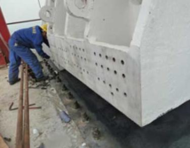 底板涂层保护/准备安装鞍座,马鞍山长江大桥鞍座自润滑工程,位于安徽马鞍山市,大桥全长36.274千米。项目总投资71亿元。采用三塔两跨悬索桥设计,代表当前世界桥梁设计的最高水准,刷新了安徽省长江大桥建设的投资纪录,主跨跨度在世界同类桥梁中位居第一。